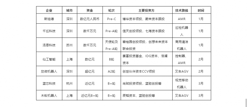 從資金投入來看,大部分企業融資金額都在億元級以上,資本對行業的投入正在加大。其中斯坦德與仙工智能更是獲得了數億元的融資。